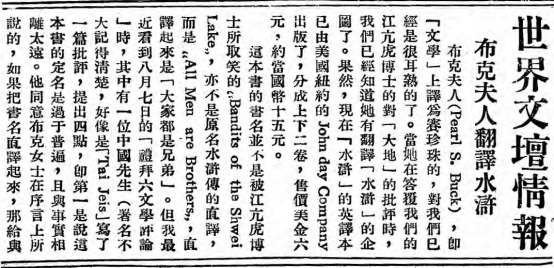 图12: 《世界文壇情報:布克夫人翻譯水滸》 ,《微言》,1934 年 [ 第2卷 第1期 ,2-4页